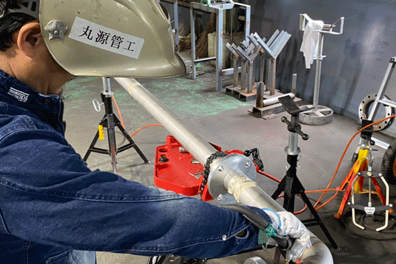 株式会社丸源管工の主力業務は配管工事・溶接加工です。溶接、配管設備工事やプラントの配管工事、設備等の設置などの業務を担当していただきます。